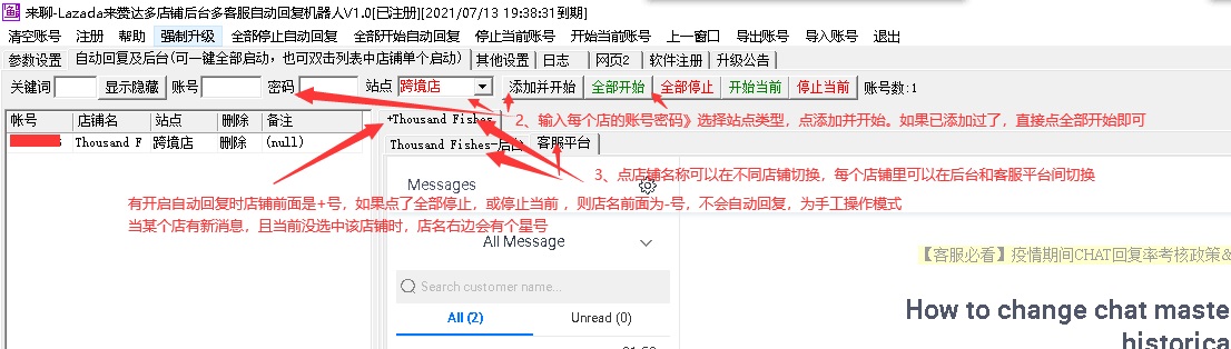 Lazada来赞达多店铺后台多客服自动回复机器人》